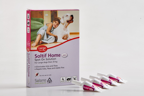 האמפולות של סולאנו מציעות שילוב מושלם של יעילות ובטיחות, עם מינון מדויק המיועד לכלבים מעל 25 ק"ג. המוצר מדביר פרעושים וקרציות ומונע מחלות המועברות על ידי טפילים אלו.